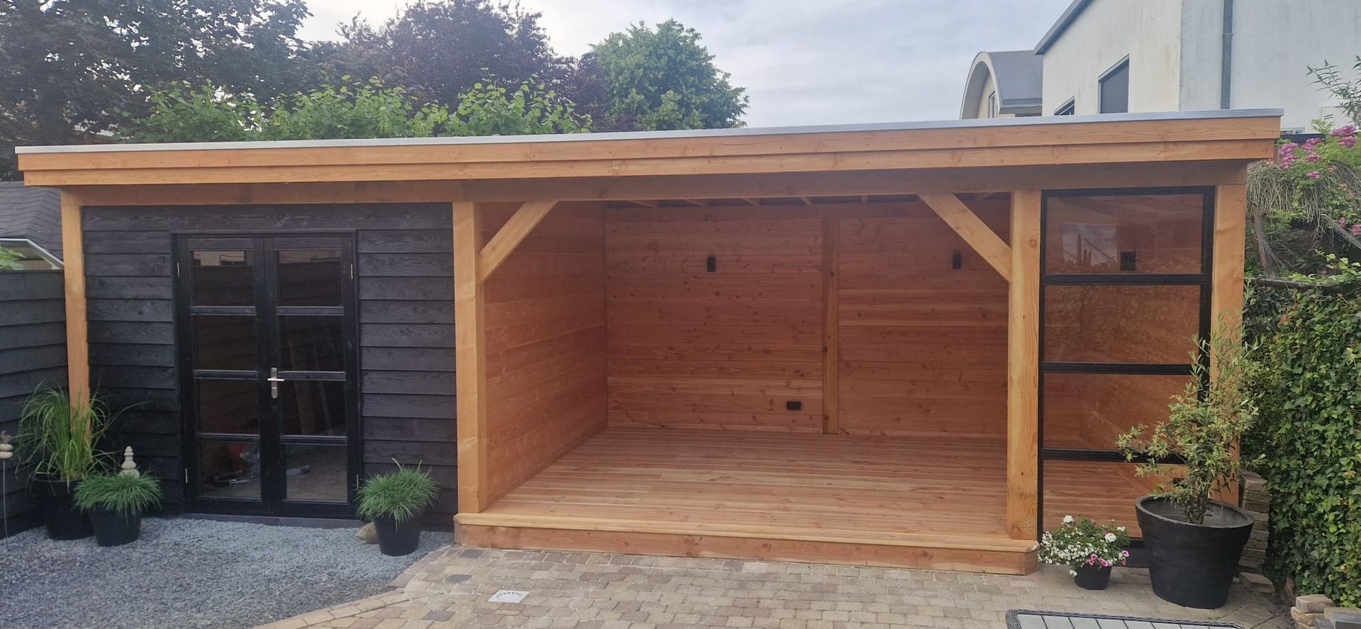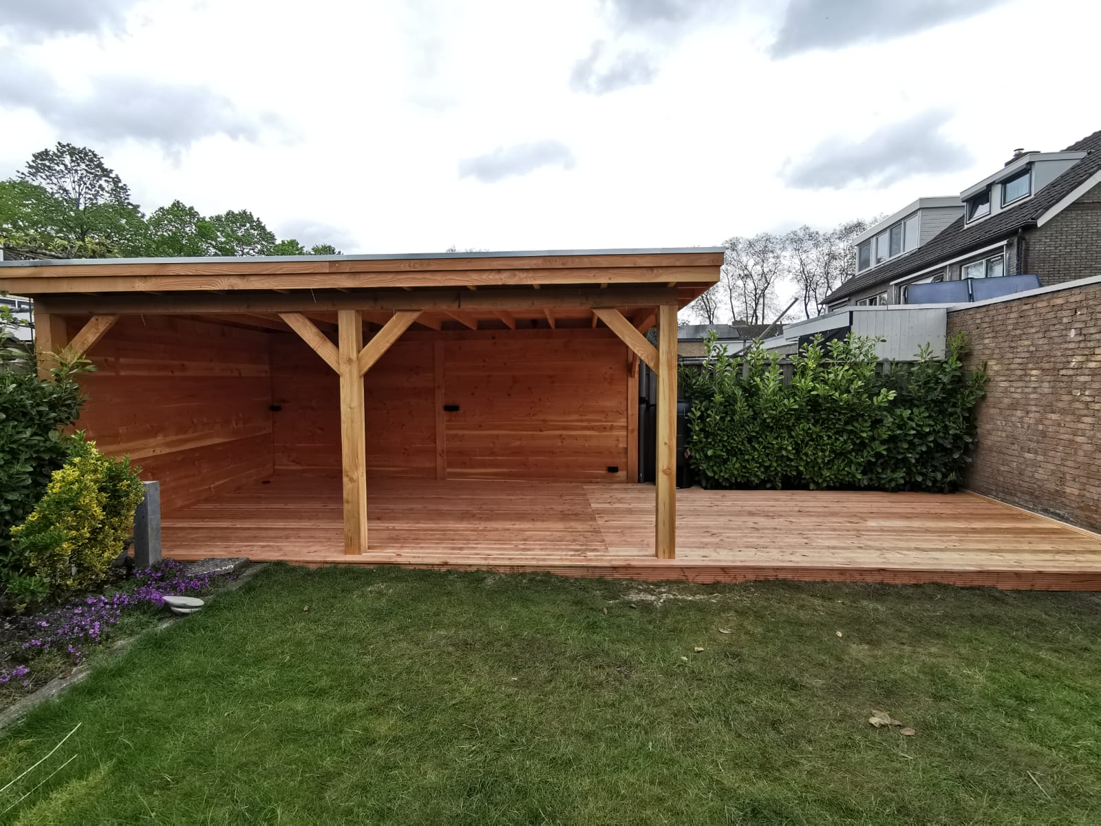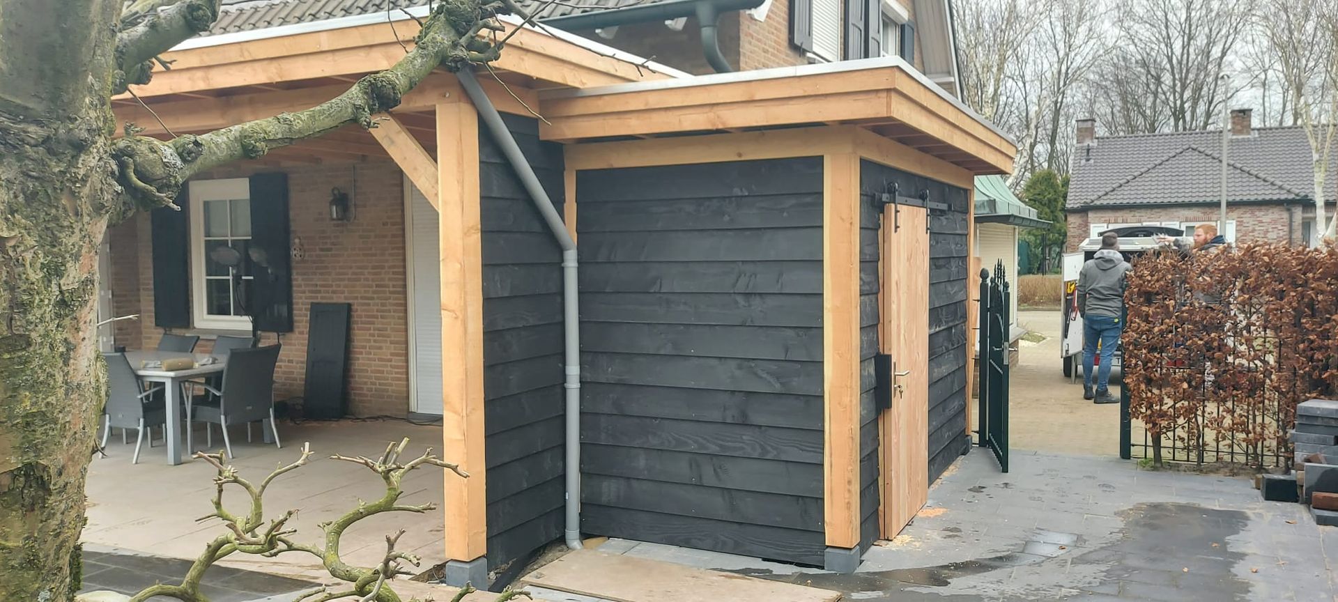Andere zochten ons ook op Hoeven overkapping terrasoverkapping houten hut pergola buitenverblijf douglas houten overkapping serre robuuste overkapping plat dakhouten schuur zweeds rabat
