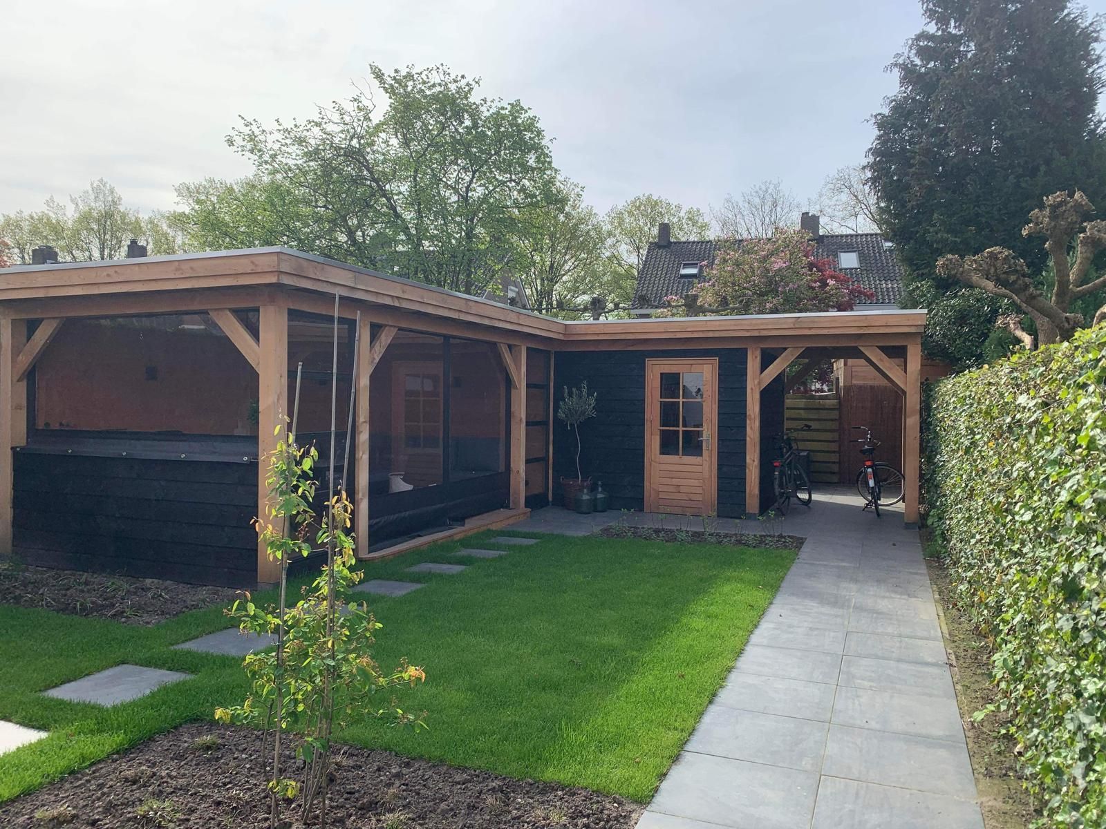 Douglas houten overkapping met bergruimte